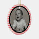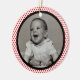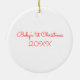 Small red dots on a white background create a festive frame for your favourite photo. Replace the centre placeholder image with your own uploaded photo. This design will work best on round or square ornaments. On the back, the current text is, "Baby's 1st Christmas 20XX" in red lettering. Change this text to suit your own photo.