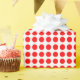 A wrapping paper designed with a red dot pattern on a white background. Customize the white background among other options.