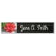 The nameplate looked exactly as pictured, I was very happy with this product! It also arrived promptly after placing my order! I would definitely recommend this product! The printing turned out exactly as I designed it, very pleased!