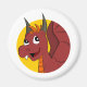 Magnet with illustration of head of a cute red dragon in yellow circle, fairy-tale design for kids by Maxiharmony
