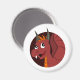 Magnet with illustration of head of a cute red dragon in black circle, fairy-tale design for kids by Maxiharmony