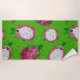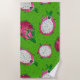Red dragon fruit on green beach towel