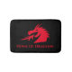 Red dragon head design unique bath mat for home. Fantasy beast head logo with horns, spitting fire flames. Personalise with your own name or quote. Great for Chinese New Year.