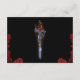 A bold red dragon perches atop a sword, while vibrant red roses add a rich contrast—both set against a deep black background