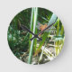 Red Dragonfly Clinging on Leaf Round Clock