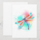 Red, flying, artistically drawn, in bright colours with textured iridescent, blue wings on white background, painted over with splashes of watercolor paint. Bright red dragonfly.