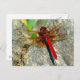 A full colour photograph of a bright red coloured flying insect (dragonfly or damselfly) with its lacy wings and bulging buggy eyes, resting briefly on a rock in the sunshine.
