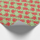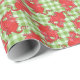 A roll of fun Giftwrap, with a pattern of cute little red dragons on a green check gingham background, from a handpainted watercolour illustration by Judy Adamson.