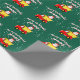 Red dump truck with Santa Claus cartoon Christmas Wrapping Paper . Red toy truck with Santa, snow flakes and personalized name of child. Fun gift wrap design for children and babies. Adorable dumptruck illustration. Green or custom background color. Available in matte and glossy rolls.