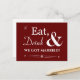 Invite friends and family to help you celebrate your recent marriage with this funky retro white on dark red Eat, Drink & Be Married! elopement party invitation postcard.