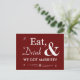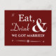 Red Eat Drink We Got Married Retro Elopement Postcard