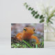 This postcard features the Red Eft, the terrestrial juvenile stage of the Eastern Newt (or Red-Spotted Newt). This curious orange fellow with red spots has just emerged from the pond to spend two or three years on land before heading back to the water as a full grown salamander. Inside are two smaller red efts.