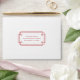Created to coordinate with the "Deco Joy Frame" holiday card collection, this elegant envelope features a delicate, deco-inspired frame and space for the card recipient's name and address. There is space on the back flap for the customer's address. The inside of the envelope features a coordinating deco pattern on a solid red background.