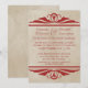 Stylish and chic Elegant Deco Wedding Invitation featuring a pair of art deco swirl flourish borders in dark red and a vintage textured look background in a soft beige. This invite has rustic charm while maintaining a lovely sophisticated flair. Absolutely perfect for an art deco 1920's vintage themed wedding. Easy to customise, simply add your wedding details in the text fields provided. Click "Customise It" to find more personalisation options such as changing fonts or text colours.