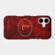 This pretty case features a beautiful gold double scalloped edge frame which encloses your monogram, also coloured gold. The oval frame and monogram are placed on a dramatic gradient burgundy red background that almost glows! Bright and colourful!