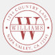 Red Elegant Monogram Return Address Classic Round Sticker