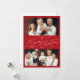 Red Elegant Script Merry Christmas Family 3 Photo Holiday Card