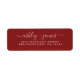Red elegant script wedding return address label featuring flowing handwritten names paired with clean, classic address typography. Designed for wedding invitations, save the dates, thank-you cards, and formal correspondence, this label adds a refined finishing touch to envelopes. The rich red color and chic script style make it ideal for newlyweds seeking a timeless and polished look. Easily personalize with your names and address.
