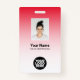 Easily personalise this Custom Corporate Employee Security Id Name Badge with Photo, Scan Bar Code or Qr code and business logo featuring a white ombre gradient on background colour. A simple business design in red and white colours with an ombrè overlay, fully customisable in front and back sizes, sans-serif basic and modern fonts and a professional, elegant and clear look. The badges are avaiable with lanyard, metal clip or with retractable. No minimum order.
