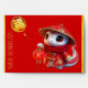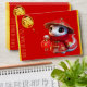 Customisable red greeting money red envelope with cute baby snake wearing Chinese cloths in cartoon style (model n°1) + Fu ideogram for Luck. Golden textured paper (image printed) inside.
