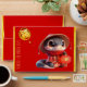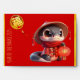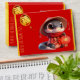 Customisable red greeting money red envelope with cute baby snake wearing Chinese cloths in cartoon style (model n°2) + Fu ideogram for Luck. Golden textured paper (image printed) inside.
