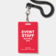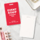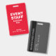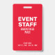 Red Event Staff Backstage Pass ID Badge. A personalised badge with an editable template for special events. Can be used by employees as an access pass or stage pass. Check out the rest of the collection for other design variations.