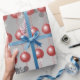 Dress your presents in style with this Red Fancy Christmas Ornament Wrapping Paper. Showcasing a fancy ornament design accented with curled ribbons, delicate fall snowflakes, and a soft grey background, it brings a polished touch to any holiday theme. The repeating tiled pattern and simple layout highlight festive Christmas baubles, making it a versatile choice for all your packages. A perfect Christmas gift supply, this wrapping paper adds elegance and seasonal charm to every present.