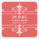 Simple and elegant Fancy Ornamental Save the Date Stickers in red and white featuring a sophisticated art deco style ornamental flourish border. Easy to customise, simply add your wedding details in the text fields provided. Click "Customise It" to find more personalisation options.