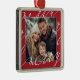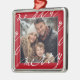 Red Fancy Script "Merry" Christmas Photo Metal Ornament
