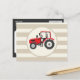 Cool, retro, colourful kid's Red Farm Tractor, country farmer design on tan & off white stripes, striped pattern with vintage feel. Perfect gift for baby, toddler, kids, children, teens, or adults! Personalised the design by adding a child's name or custom text. Visit our store, Birthday Party House, for more great customisable boy and girl products!