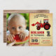 Red Farm Tractor Photo 1st First Birthday Party Invitation