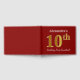 This guest book design features the ordinal number "10th" with a faux gold-like appearance. It also features a custom name, and a red coloured background. It could be used at a party for somebody celebrating their tenth birthday. [~Z0000055]