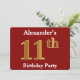 Red, Faux Gold 11th Birthday Party + Custom Name Invitation