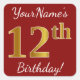 Red, Faux Gold 12th Birthday + Custom Name Sticker