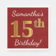 Red, Faux Gold 15th Birthday + Custom Name Napkin