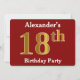 Red, Faux Gold 18th Birthday Party + Custom Name Invitation