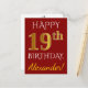 Red, Faux Gold 19th Birthday + Custom Name Postcard