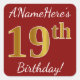 Red, Faux Gold 19th Birthday + Custom Name Sticker
