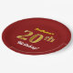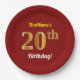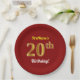Red, Faux Gold 20th Birthday + Custom Name Paper Plate