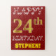 This fun and simple birthday puzzle design features the message "HAPPY 24th BIRTHDAY", with the "24th" having a faux/imitation gold-like colour appearance. It also features a custom name, and a red coloured background. It could be a fun and special way to deliver a personalised birthday greeting to somebody who is celebrating their twenty fourth birthday. [~Z0000200]