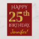 Red, Faux Gold 25th Birthday + Custom Name Postcard
