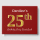 This guest book design features the ordinal number "25th" with a faux gold-like appearance. It also features a personalised name, and a red coloured background. It could be used at a party for somebody celebrating their twenty fifth birthday. [~Z0000055]