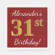 Red, Faux Gold 31st Birthday + Custom Name Napkin