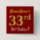 Red, Faux Gold 33rd Birthday, With Custom Name 15 Cm Square Badge