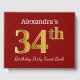 This guest book design features the ordinal number "34th" with a faux/imitation gold-like appearance. It also features a customised name, and a red coloured background. It could be used at a party for somebody celebrating their thirty fourth birthday. [~Z0000055]