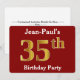 This invitation design features the ordinal number "35th" with a faux gold-like appearance. It also features a customised name, and a red background. The event details on the back can be personalised. It could be used to invite people to somebody’s thirty fifth birthday party. [~Z0000012]