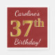 Red, Faux Gold 37th Birthday + Custom Name Napkin