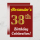 Red, Faux Gold 38th Birthday Celebration + Name Invitation