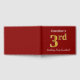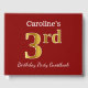 This guest book design features the ordinal number "3rd" with a faux gold-like appearance. It also features a personalised name, and a red coloured background. It could be used at a party for somebody celebrating their third birthday. [~Z0000055]