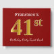 This guest book design features the ordinal number "41st" with a faux/imitation gold-like appearance. It also features a personalised name, and a red coloured background. It could be used at a party for somebody celebrating their forty first birthday. [~Z0000055]